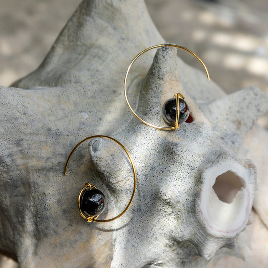Pluto – Black Onyx Beaded Hoop Earring